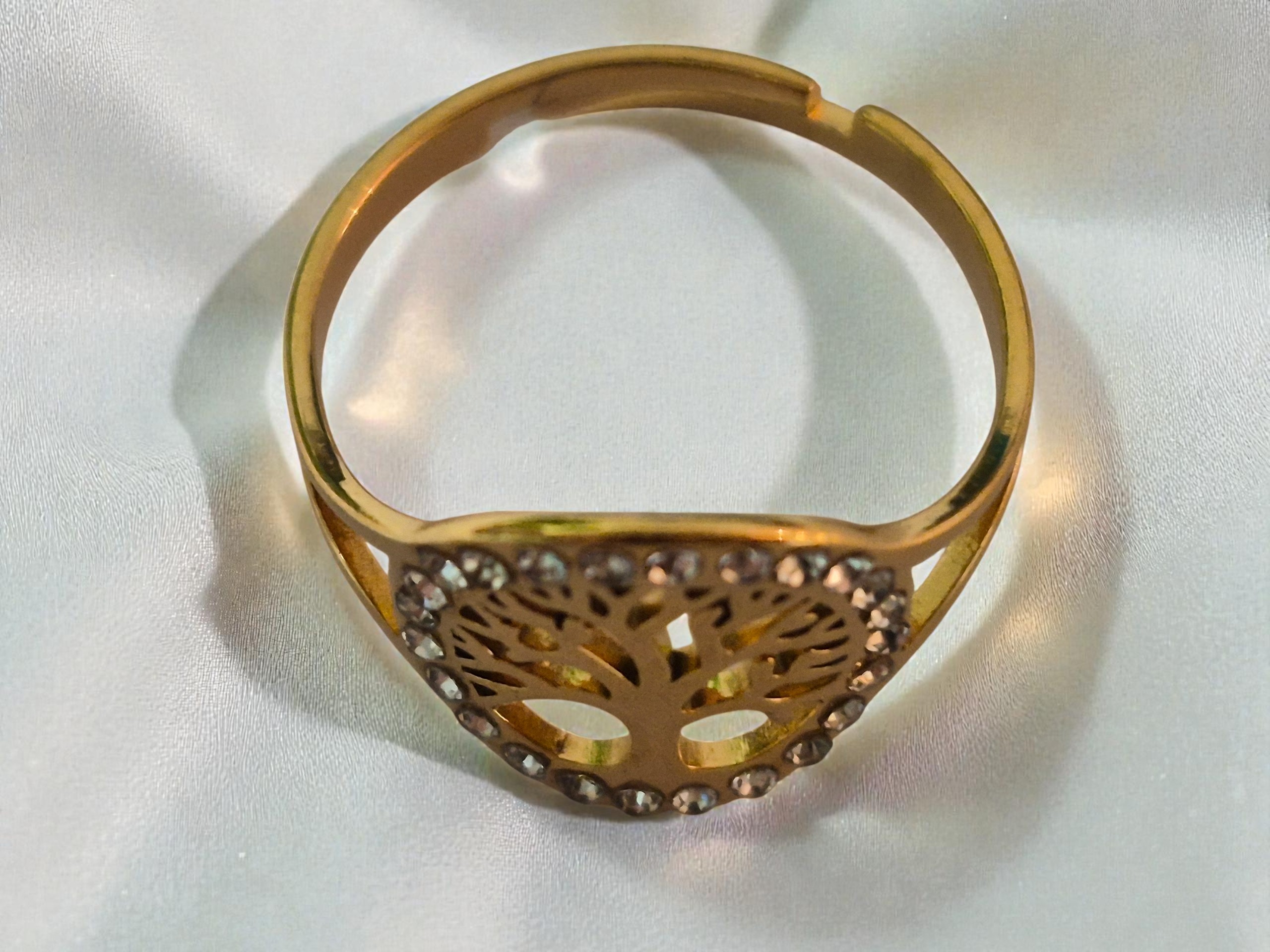 Bague arbre de vie en acier inoxydable dorée avec strass