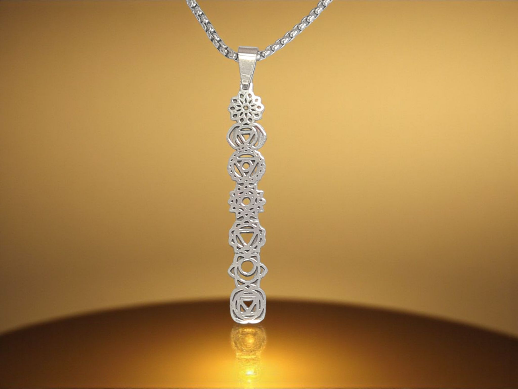 Ce collier 7 CHAKRAS argenté est en acier inoxydable.