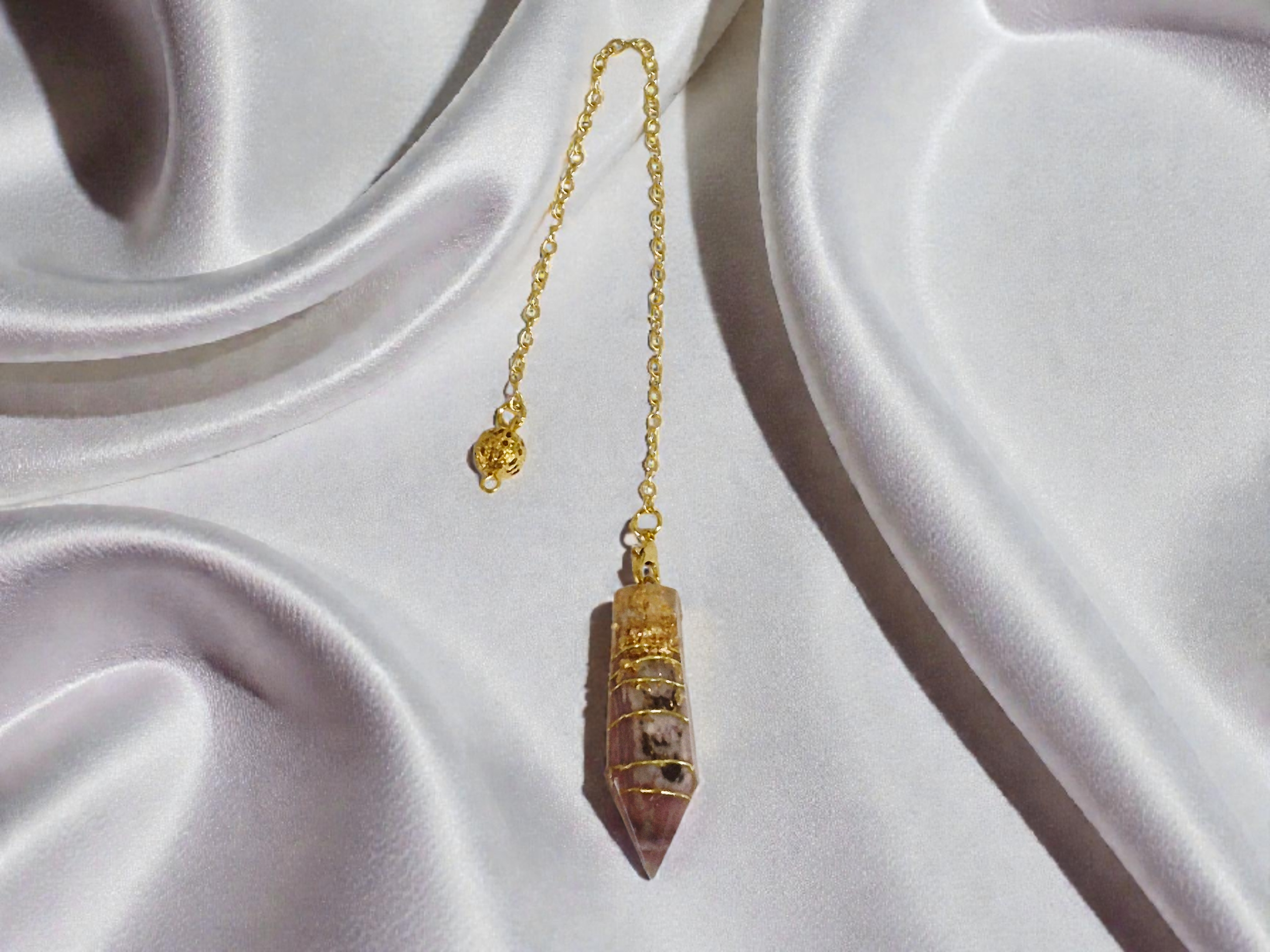 Notre pendule orgonite est en rhodochrosite