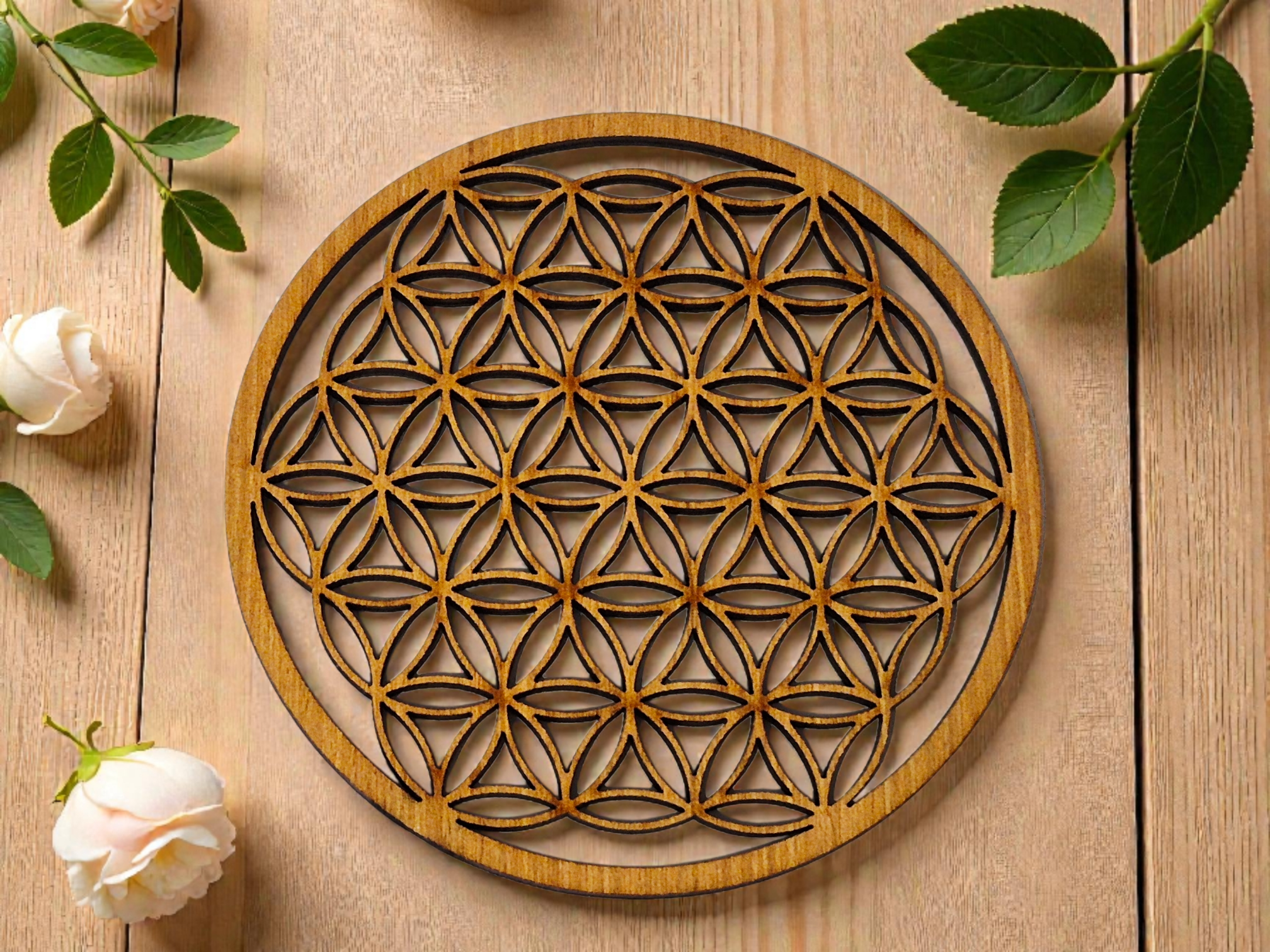 Plateau fleur de vie 12 cm en bois médium fabriqué en France